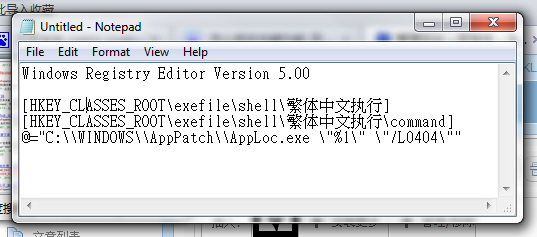 [HKEY_CLASSES_ROOT\exefile\shell\繁体中文执行\command]