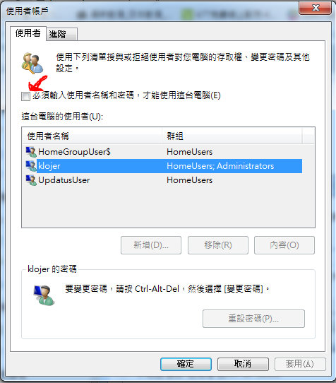取消勾選"必須輸入使用者名稱和密碼的選項"