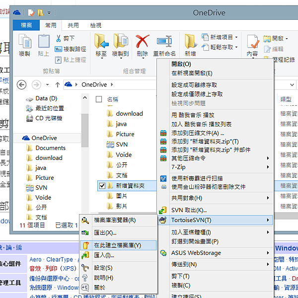 我是用onedrive,先在onedirve目錄下新增資料夾,資料夾名稱可自取我就直接用"SVN"了