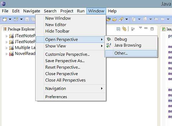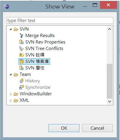 7.點windows ->ShowVies -> Other 開啟SVN檔案庫