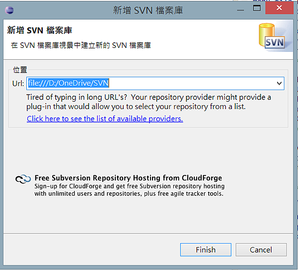 如何在eclipse上對JAVA文件使用onedrive的空間做svn版本管理