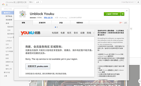 插件網址:https://chrome.google.com/webstore/detail/unblock-youku/pdnfnkhpgegpcingjbfihlkjeighnddk/details?hl=zh-TW